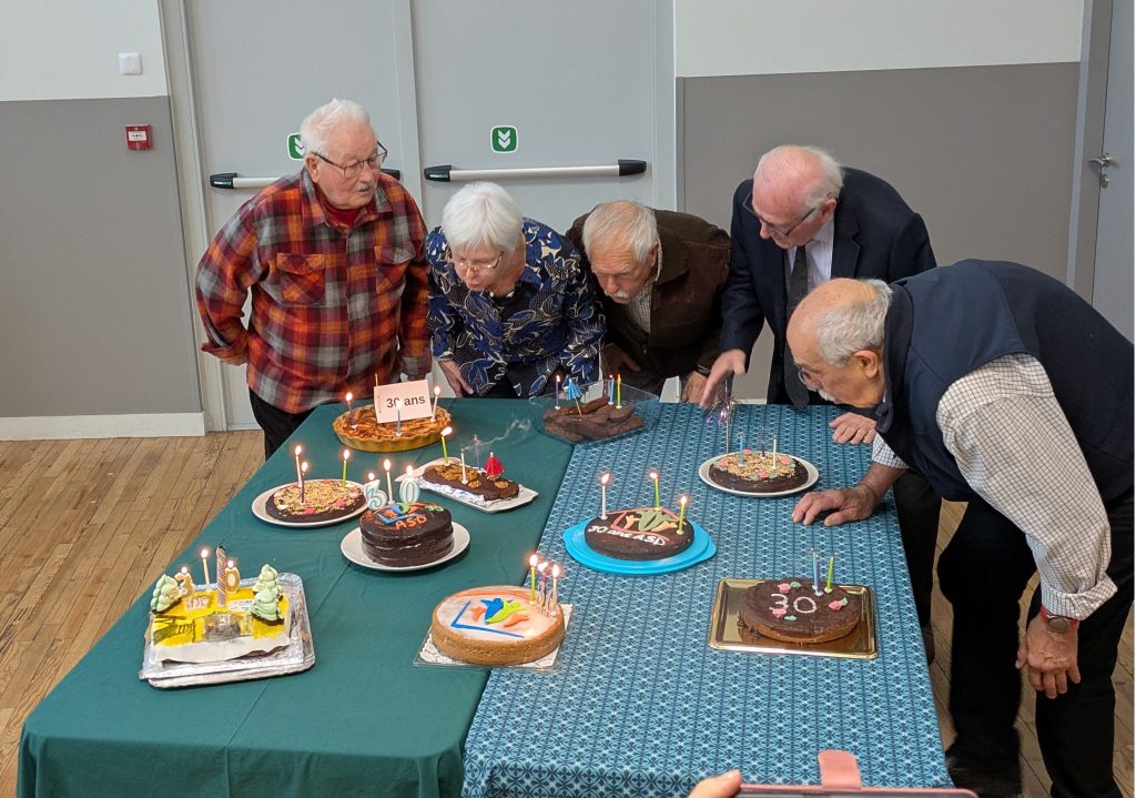 Les projecteurs se sont alors tournés vers les 5 présidents qui se sont succédé à la tête de l’ASD depuis sa création en 1995 : Francis, Victor, Yvan-Claude, Jean-Noël et aujourd’hui Catherine. Par quelques mots, chacun a pu laisser paraître la force de son engagement et surtout passer un message rempli de beaucoup d’hommages, de reconnaissance du travail et de l’investissement des bénévoles. Sûr que l’émotion était au rendez-vous. Ils ont alors pu souffler ensemble les 30 bougies réparties sur les 10 gâteaux d’anniversaires réalisés par nos excellentes pâtissières.